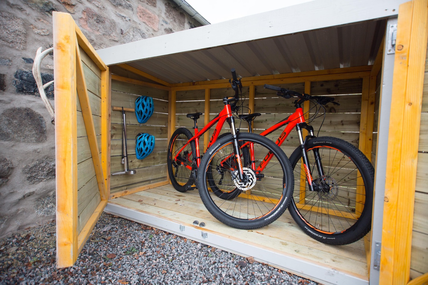 - Outside area: private parking, bike lockers, bench.